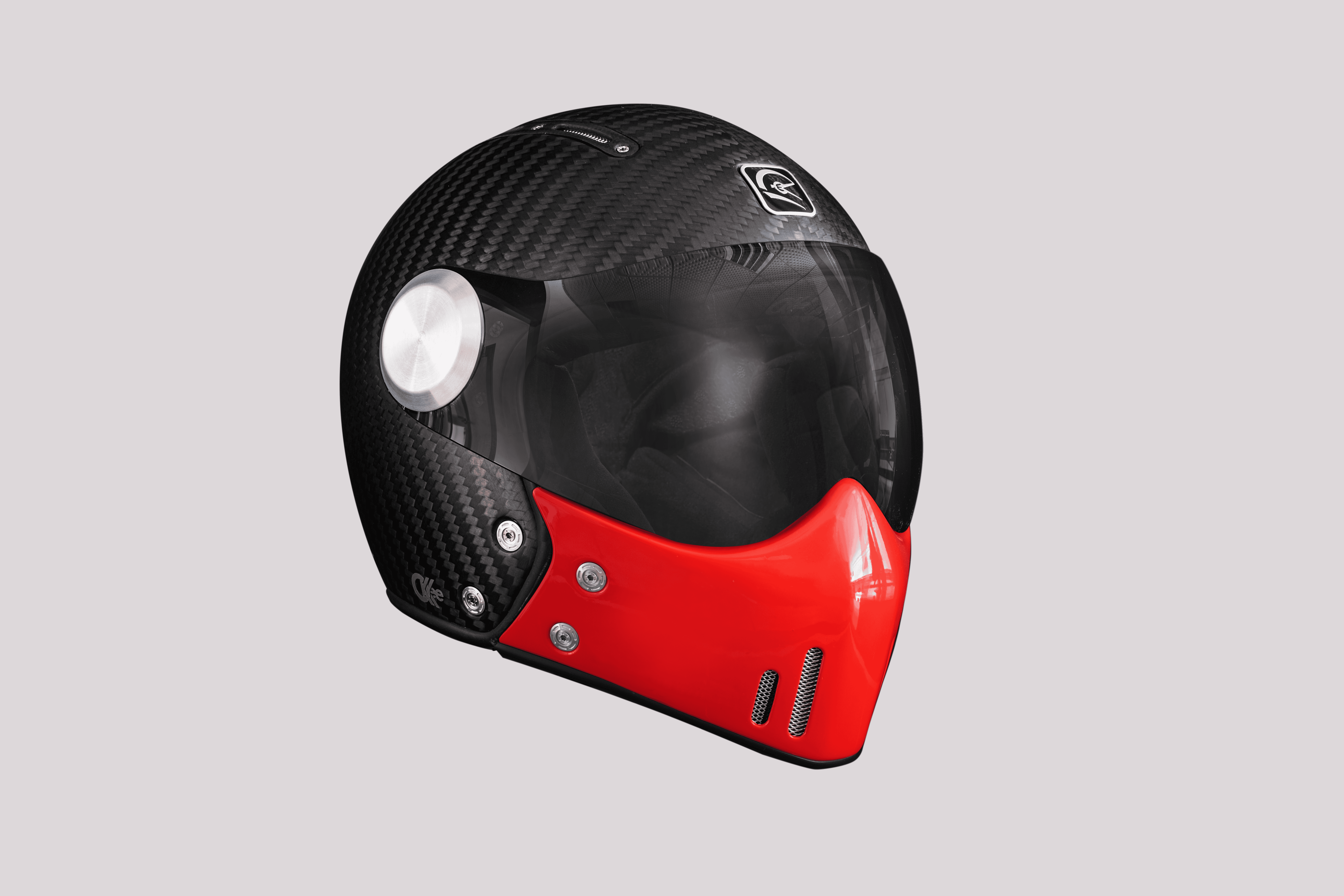 • Mentoniera in carbonio e kevlar stampata con laminazione in autoclave